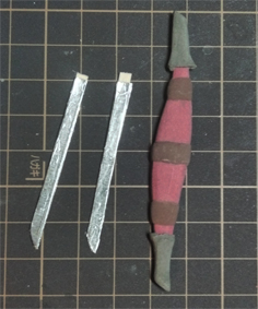 アルミホイルは、最終的に粘土を焼くから熱の通りを良くするためと、軽量化、粘土節約のため。