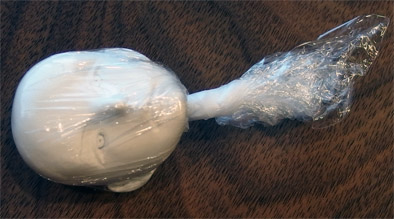 とりあえず、先日作った頭を汚さないようにラッピング。