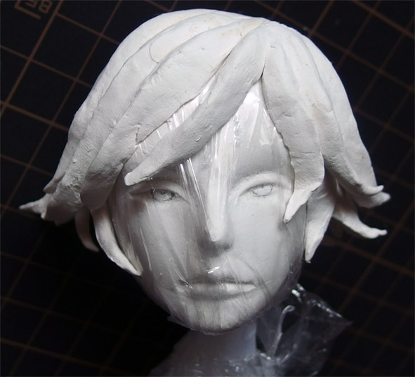 キュウゾウ殿の髪は複雑そうなので、何段階かに分けて造形します。